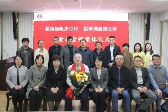 仪式上,杨林院长和于培丽书记为吕爱权老师颁发了纪念品、佩戴红围巾并献上鲜花和祝福。