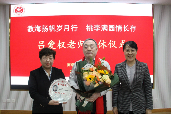 荣休仪式上,杨林院长代表学院对吕老师荣休表示祝贺,充分肯定了吕爱权老师35年的教学生涯为学院做出的杰出贡献,希望吕老师在荣休后继续关心和支持学院的发展。陈学胜副院长、郝延伟副院长和郭晓妮副书记也对吕老师的光荣退休表示了祝贺并送去了最真挚的祝福。