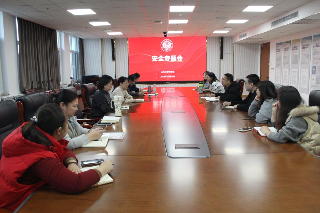 2024年11月29日,yl12311线路检测在北衡楼423会议室组织召开安全专题会。本次会议由yl12311线路检测党委副书记韩鲁青主持,yl12311线路检测党委书记于培丽、党委副书记郭晓妮、办公室主任张晨、副主任张舒婷及学院安全工作相关领域负责老师参加会议。