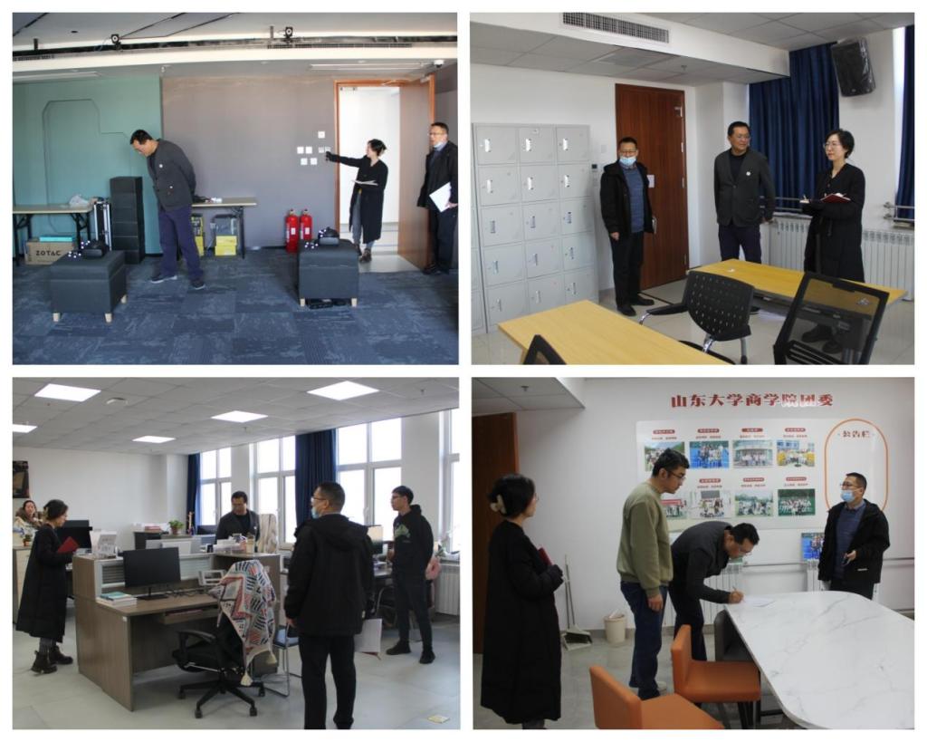 韩鲁青一行实地查看了北衡楼4层到9层的实验室、辅导员办公室、教务办公室、学生会活动室、研究生自习室、学术研讨室及安全通道等重点场所,对环境卫生、物品摆放、用电安全等方面进行了逐项、全面、细致地检查。检查发现,针对上次学院安全检查所提出的整改意见,相关负责人已认真落实整改措施,各项改进成效显著。