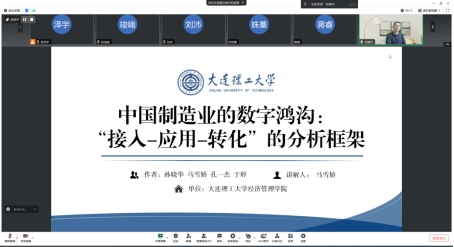 为拓宽研究生学术视野,提升研究生学术素养。5月28日下午,yl12311线路检测邀请大连理工大学经济管理学院教授、博士生导师孙晓华,为yl12311线路检测师生带来题为“中国制造业的数字鸿沟—— “接入-应用-转化”的分析框架”的线上学术讲座。本次讲座由刘沛老师主持,相关专业师生参加本次讲座。