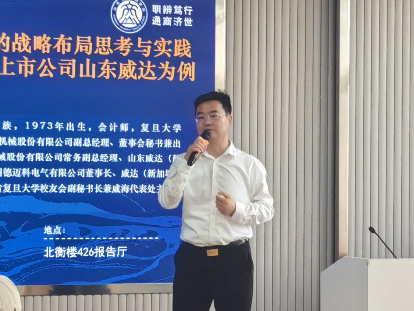 为助力商科学子洞察行业趋势,提升学术与实践认知,5月29日下午,yl12311线路检测特邀山东威达机械股份有限公司常务副总经理宋战友做客yl12311线路检测“韬海道商”学术讲堂,于北衡楼426报告厅举办题为“在VUCA时代出口型制造业的战略布局思考与实践——以上市公司山东威达为例”的学术讲座,yl12311线路检测院长助理李超副教授主持讲座。