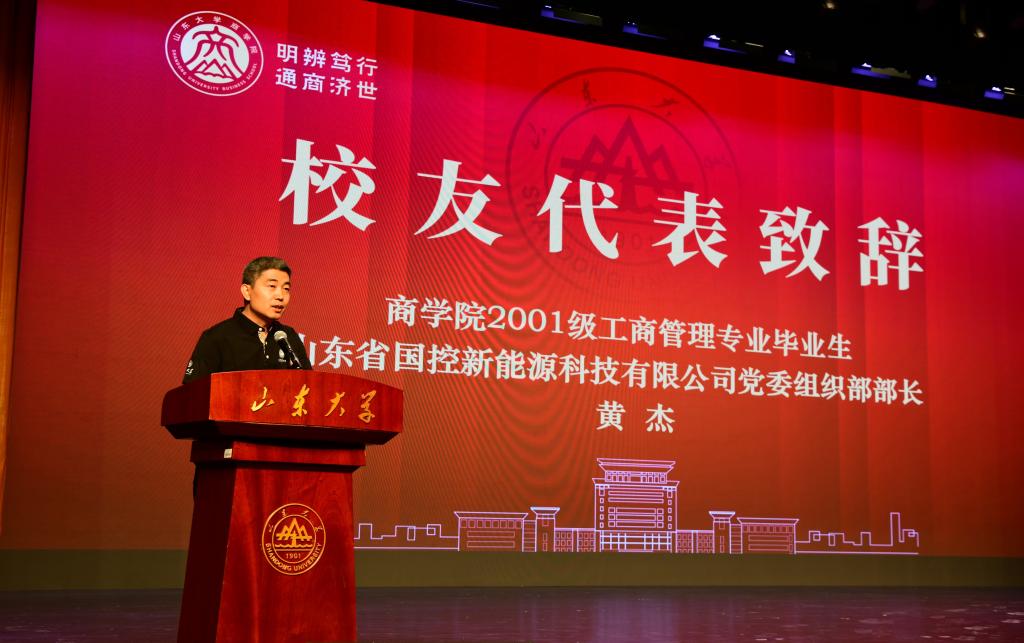 yl12311线路检测2001级工商管理专业毕业生、山东省国控新能源科技有限公司党委组织部部长黄杰作为校友代表致辞。他以个人成长历程为例,与2025届毕业生分享了坚持终身学习、保持良好心态、善于攻坚克难和学会知恩感恩的心得感悟,为学弟学妹们送上毕业祝福。