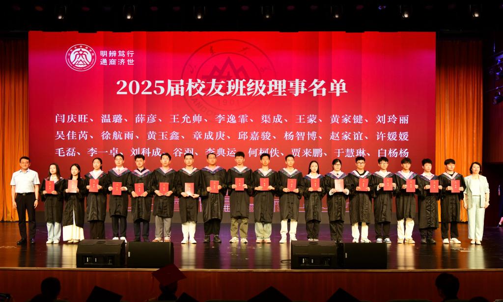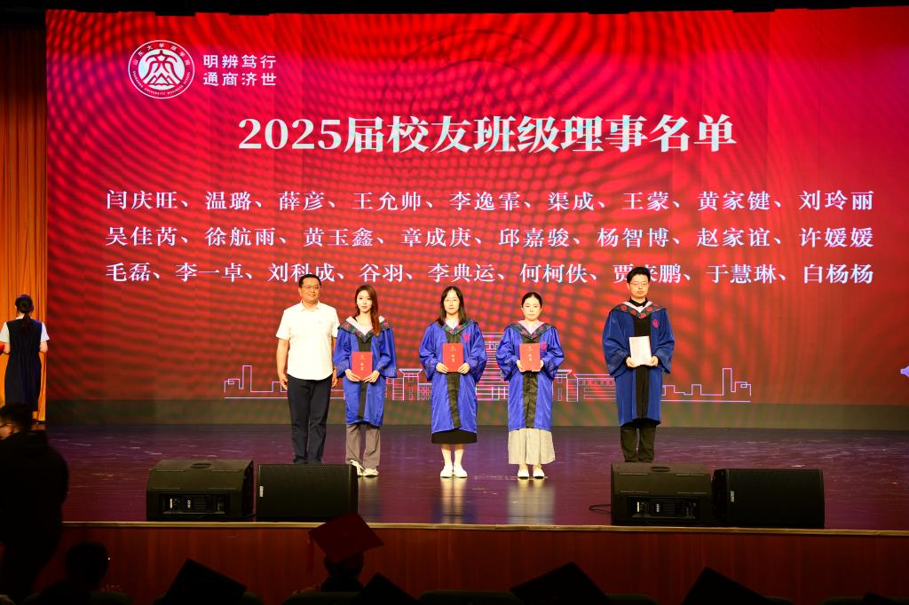 校友理事承载着连接母校与校友间情感纽带的重任。典礼现场,党委副书记郭晓妮与副院长郝延伟、党委副书记韩鲁青分别向2025届本科生、研究生校友理事代表颁发聘书,以此寄望他们能够连接五湖四海的商学校友,成为商院精神的流动名片,为学校繁荣和学院发展凝心聚力。