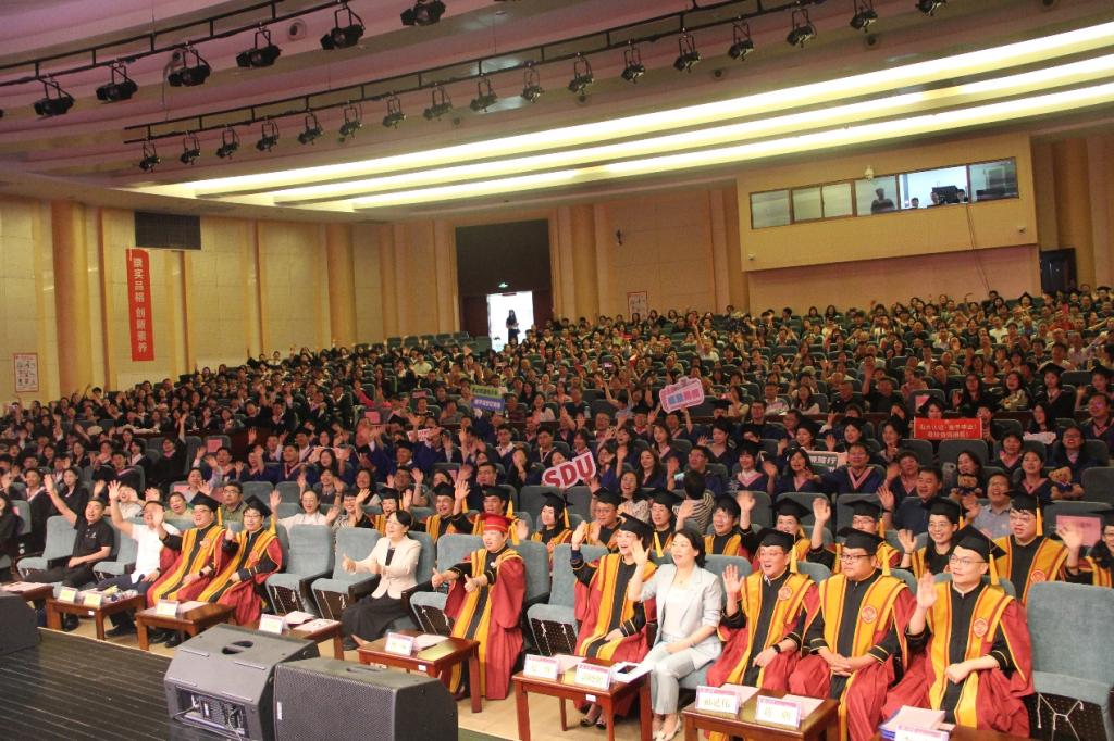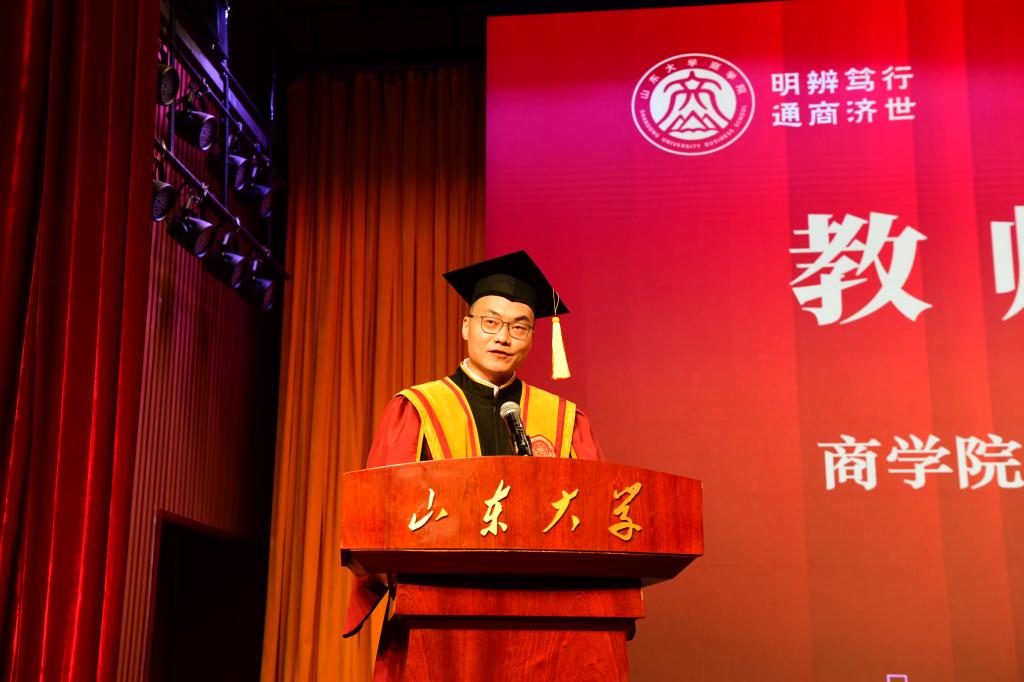 教师代表李超老师以自身科研经历为切入点,用“五年半零成果”到“斩获校长奖”的逆袭故事,向毕业生分享三点人生感悟:一是要勇敢接受人生的周期性起伏和波动,二是要做一位长期主义的价值投资者,三是要永远铭记自己作为山大人的使命与担当。