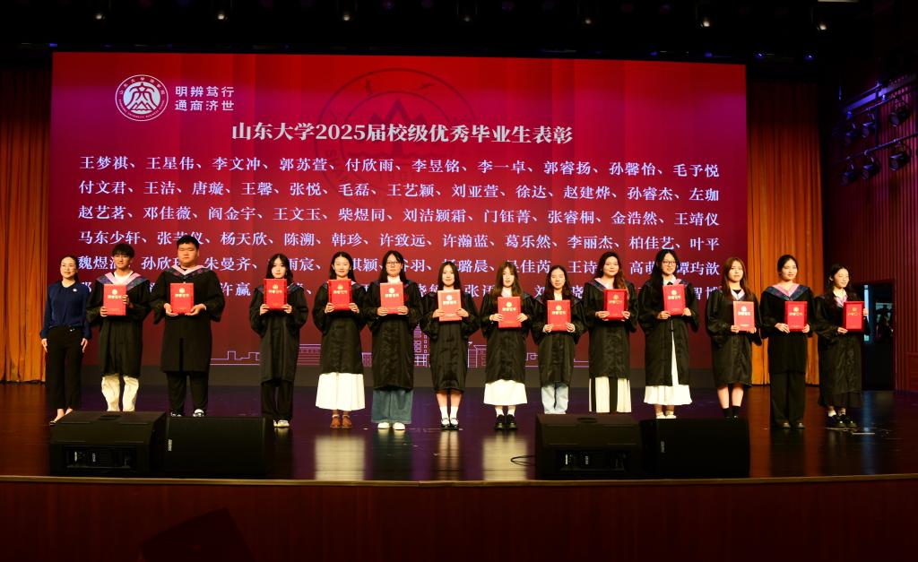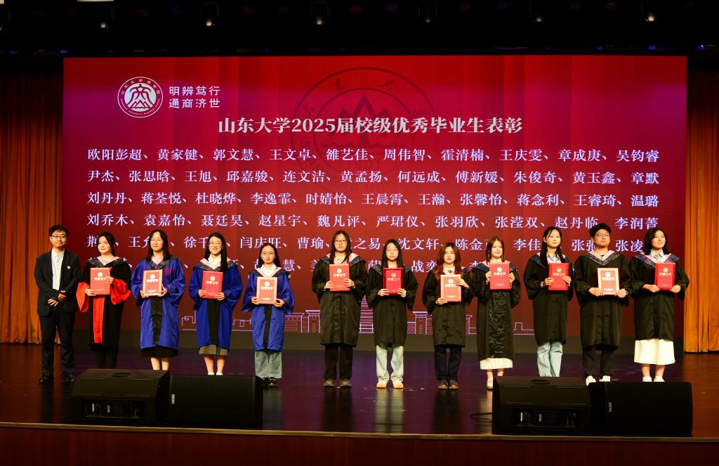 典礼在庄严的国歌声中拉开帷幕。yl12311线路检测副院长夏辉、威海前沿交叉科学研究院副院长张宁为优秀毕业生代表颁发荣誉证书。yl12311线路检测副院长陈学胜为赴西部、基层和国家重点行业领域就业的毕业生代表颁发“励志先锋”荣誉奖牌。