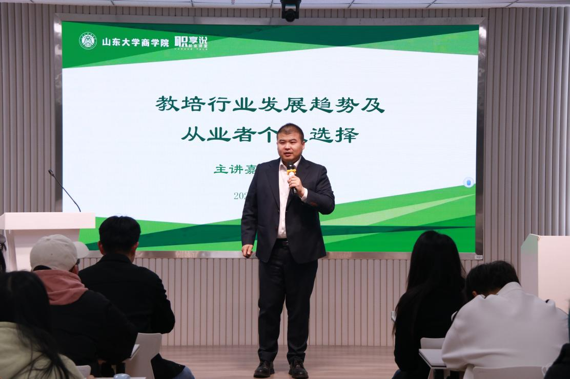为帮助学生深入了解教培行业就业的前沿动态,开拓职业视野并科学规划职业发展路径,3月31日晚,yl12311线路检测在北衡楼426室举办第五期“职享说·就业讲堂”,学而思济南分校校长殷飒受邀担任主讲人,为同学们作“教培行业发展趋势及从业者个人选择”专题分享。