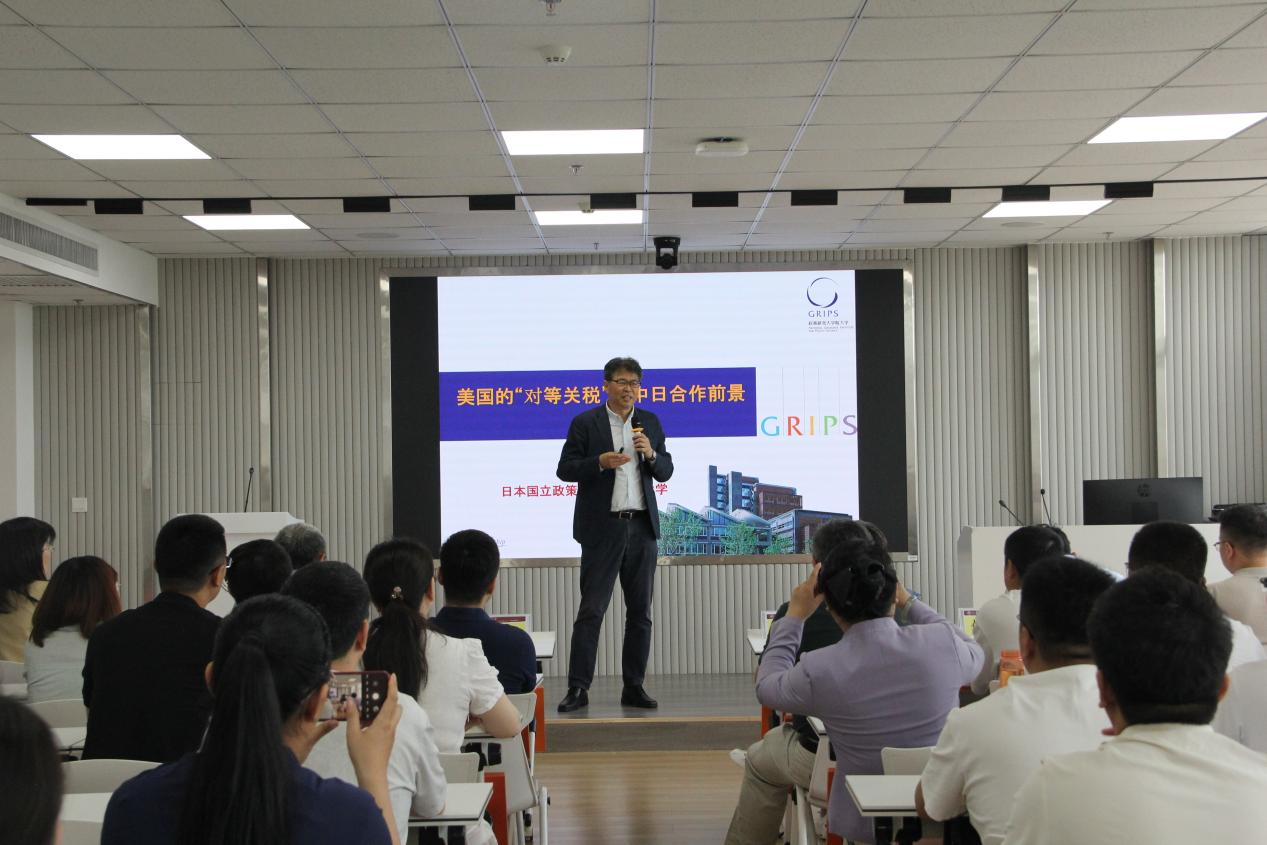 山东省欧美同学会副会长、威海市欧美同学会会长赵玉璞、yl12311线路检测副院长郝延伟分别致辞,表达对活动的期待。邢予青教授从全球价值链的视角出发,系统分析了4月2日特朗普开启的全球贸易战、对等关税的理论基础和原因,指出全球价值链的深度融合形成了中美企业的“命运共同体”,强调美国贸易政策调整为中日合作创造了重要机遇,两国应共建区域供应链体系实现共赢发展。