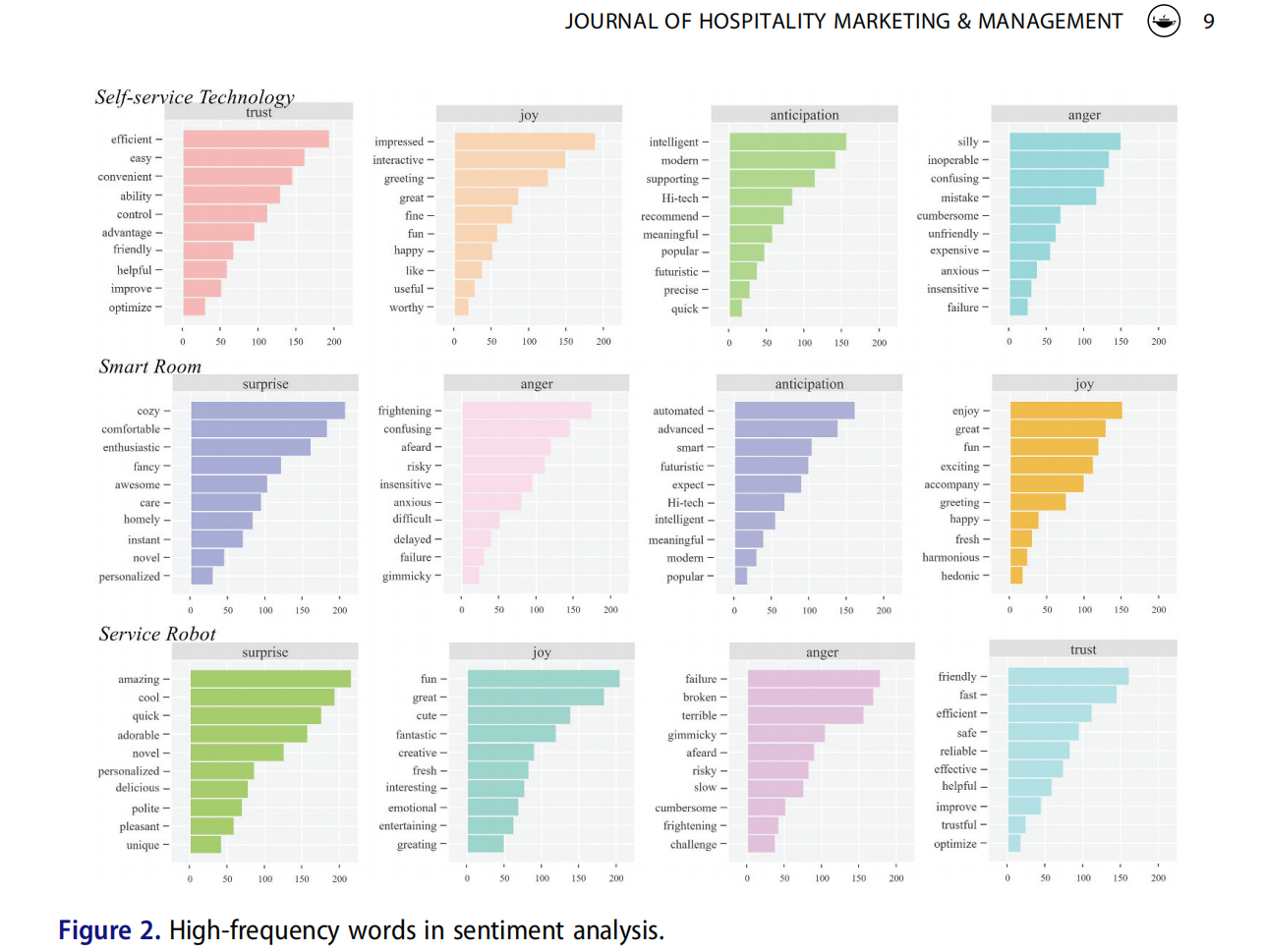 智能技术的进步和应用已成为酒店业数字化转型的重要特征。为了调查消费者对人技交互 (HTI) 不断变化的期望、确认和不确认, 以及他们相关的创新属性, 论文使用文本挖掘和内容分析对用户生成内容 (UGC) 和访谈数据进行了分析。结果表明, 客人对智能服务的满意度以积极为主, 特别是在功能性能、美学吸引力和交互质量方面。然而, 服务中断、设备故障和不友好操作引起了消费者的明显沮丧。比较分析显示, 消费者优先考虑自助服务技术的效率、智能房间的个性化和服务机器人的新颖性。纵向分析证实了从寻求新奇到必要性驱动采用的感知转变, 伴随着对情商和体验价值的期望越来越高。该研究通过揭示HTI背后的动态机制, 推动了期望不确定性和创新扩散理论, 为酒店业的可持续创新和体验共造提供了启示。