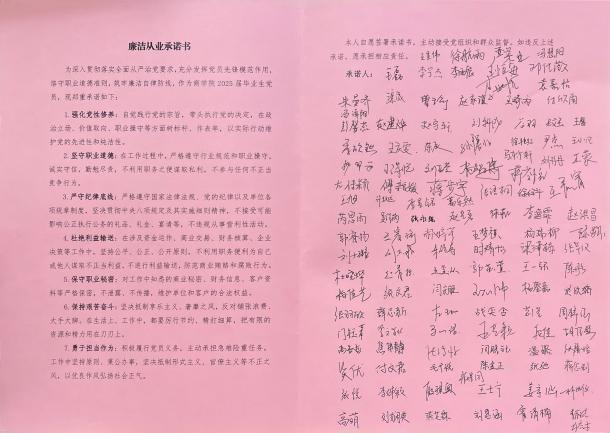 毕业生党员们还集体签署了《廉洁从业承诺书》,对未来的职业行为作出了庄严承诺。