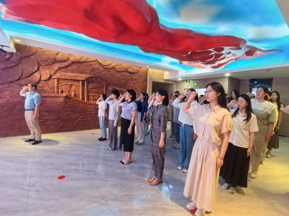 在百年初心展厅,在讲解员的带领下,党员们系统回顾党的光辉历程和矢志初心,深入探寻“中国共产党人为什么能够坚守初心”的历史答案,汲取奋进力量。在本科生第三党支部书记陶宏的领誓下,全体毕业生党员面向党旗庄严宣誓,重温入党誓词,坚定理想信念。