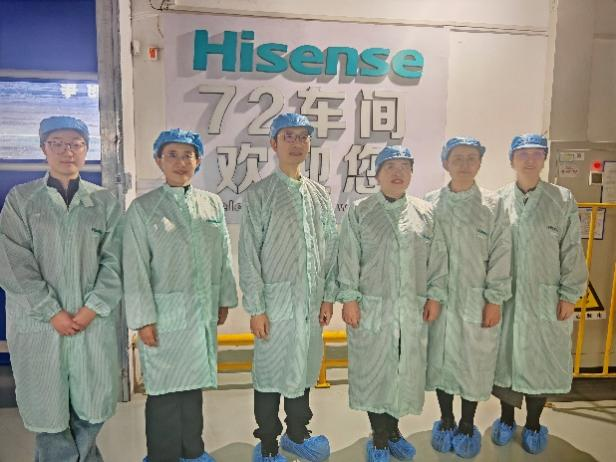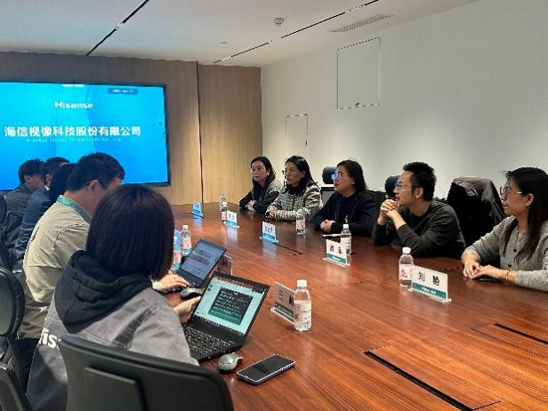 在海信视像公司,党支部一行实地探访72车间,参观了解海信视像的发展历程、产品矩阵、公司战略和企业文化等,详细了解海信电视生产制造的整个流程以及数字化建设情况,并与扎根一线的“齐鲁匠王”李志伟进行探讨,学习李志伟“要善于在实践中发现问题,钻研问题并解决问题”的匠王精神。随后围绕党建引领企业数字化建设和创新发展,双方进行了座谈研讨,深入学习海信视像产业发展和数智化建设等情况,并针对校企支部共建及人才招聘等方面进行交流。