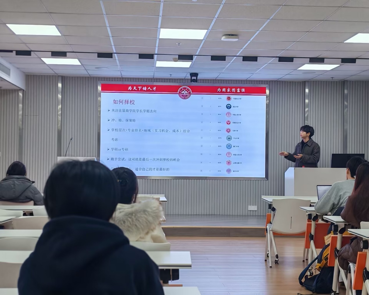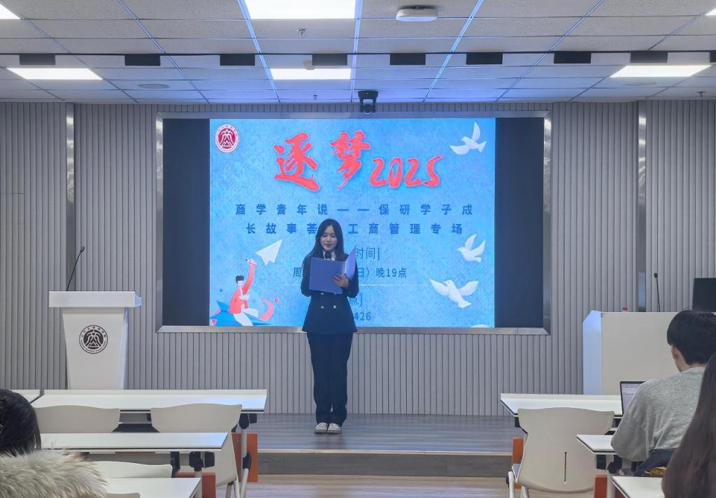 本次商学青年说——保研学子成长故事荟活动是“逐梦2025”——凝“商”聚力,“职”引未来系列主题活动第八期。此活动作为提升“三全育人”工作实效的关键举措之一,充分发挥了榜样示范作用,通过朋辈分享助力学生成长成才,形成了知识传承与经验共享的良好循环,推动营造积极向上、追求卓越的浓厚学习氛围。