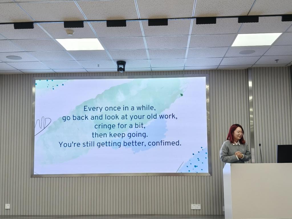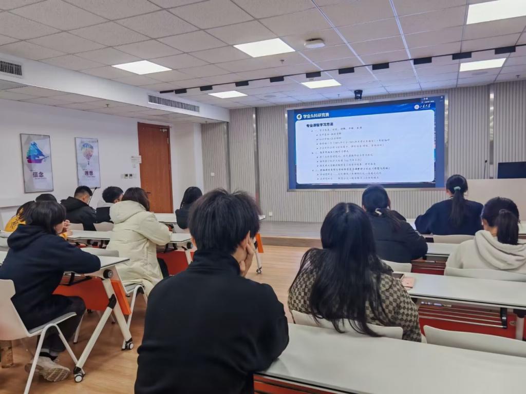 11月21日,来自本科生第五党支部的李昱铭在分享中提到,培养专业能力在于深入理解专业核心课程,建议同学们形成“记忆、理解、串联、应用”的学习生态。韩珍聚焦于专业学习、综合提升、心态调节等方面,提醒同学们充分利用学校、学院提供的各种资源,把握机会,打破信息差。