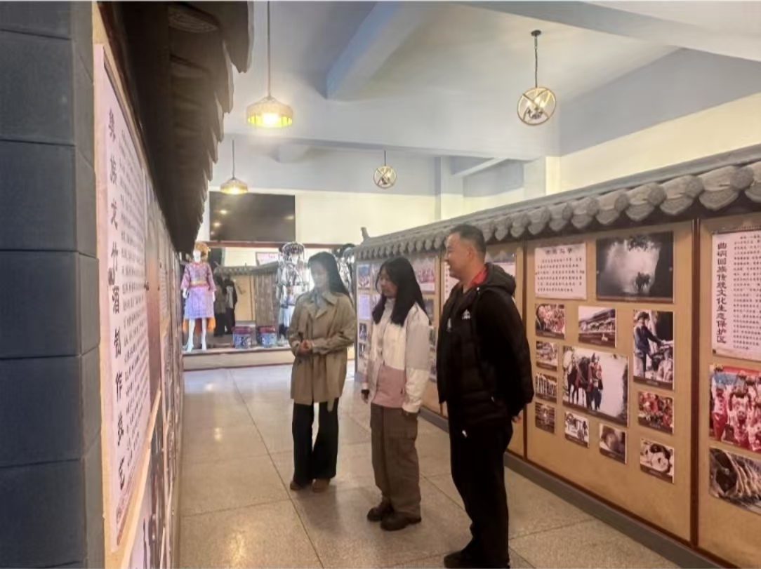 调研中期,团队成员们与多位致力于少数民族语言保护的教育工作者和民间艺人进行了深入交流。在凤庆县教育体育局,吴星垚与陈娇老师共同探讨如何利用数字化手段促进少数民族语言的传播与学习的问题;在大理州永平县文化馆,刘小小采访到馆长罗慧玲,深入了解彝族特色服饰、方言歌曲等特色文化。此外,调研团还走访了多位熟练掌握少数民族语言的民间艺人,如对彝族文化有着深厚的情感与独到的见解的李国安老师。通过与他的交流,团队成员们深入了解了彝语的传承现状以及互联网新时代下彝语传承面临的机遇与挑战。调研中期的采访不仅让团队成员们对彝语的传承与发展有了更加深刻的认识,也坚定了他们利用数字化手段保护与发展少数民族语言文化的决心。