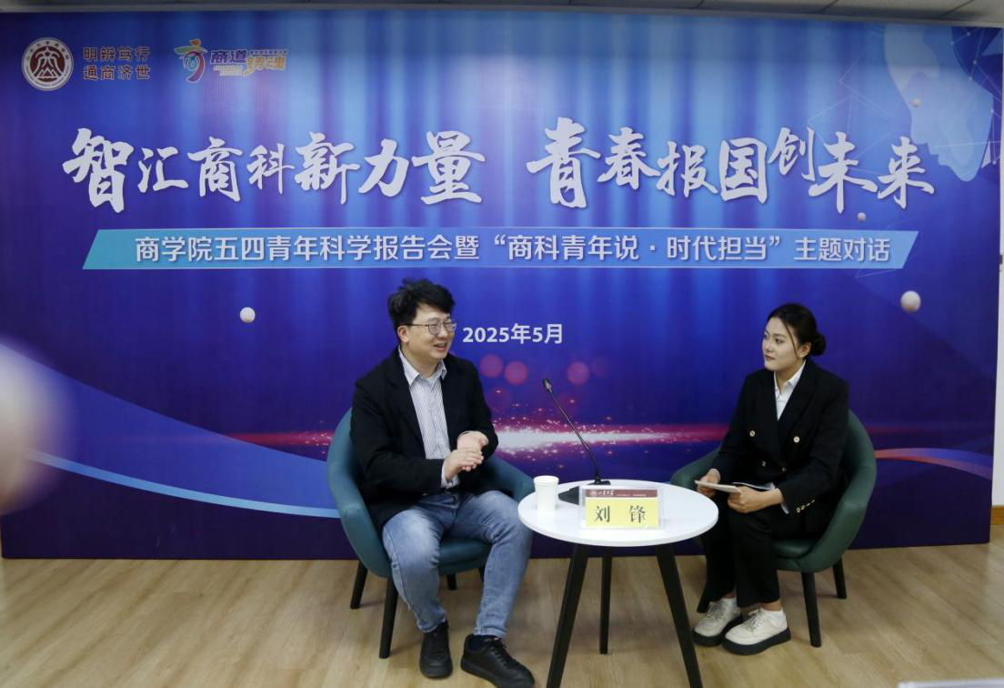 刘锋详细介绍了如何通过AI技术赋能商科研究,阐述了科研如何服务于国家“数智化”发展战略,结合个人指导的星耀科研小组的经历,为同学们展示了供应链管理和人工智能交叉融合的研究过程,重点阐释了如何将大数据研究方法应用于经管类选题。针对论文撰写,刘锋从如何提炼观点、如何组织论据、如何润色语言等方面分享了个人在撰写论文过程中的一些心得体会。针对低年级商科同学在学习机器学习和数据分析时遇到的常见困难,给出了具有针对性和实用性的建议,呼吁同学们面对困难要调整心态,敢于拼搏、勇于探索,在科研创新道路上甘坐“冷板凳”。四位青年学生代表各自从科创经历出发,畅谈成长心路、分享奋斗感悟。董兆虎把科研比作种地,表示要时刻坚持踏实做事,坚定热爱,用奋斗年华书写无悔青春;崔明欣分享了科创竞赛中的“惊险8小时”,激励同学们学会在挫折中感悟,在磨砺中成长;孙睿杰通过三次论文修改的“卡壳”经历,领悟到科研需“把问题拆解到极致”,鼓励同学们要敢于尝试,努力追逐梦想;程文贺分享了平衡学业、学生工作与科研的时间管理心得,表示要不断夯实专业本领,在担当中历练、在尽职中成长。