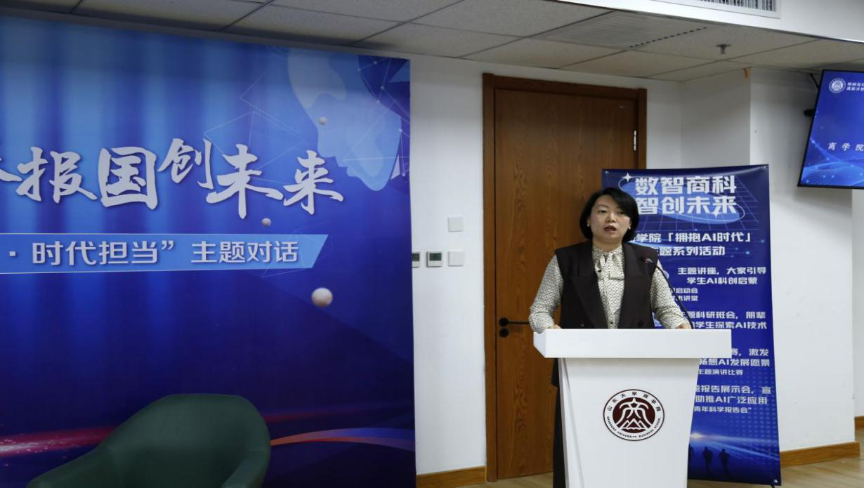 活动伊始,全体与会成员共同学习习近平总书记历年来对青年的殷切寄语,学习领会习近平总书记在中央政治局第二十次集体学习和在上海考察时的重要讲话精神。郭晓妮勉励在座同学,商科人要积极主动拥抱AI时代,不断提升专业素养和创新能力,把实现个人价值与为国家、为人民服务结合起来,在科技强国的征程中书写属于山大青年的精彩篇章。