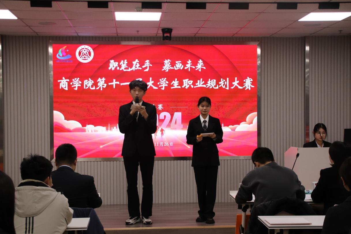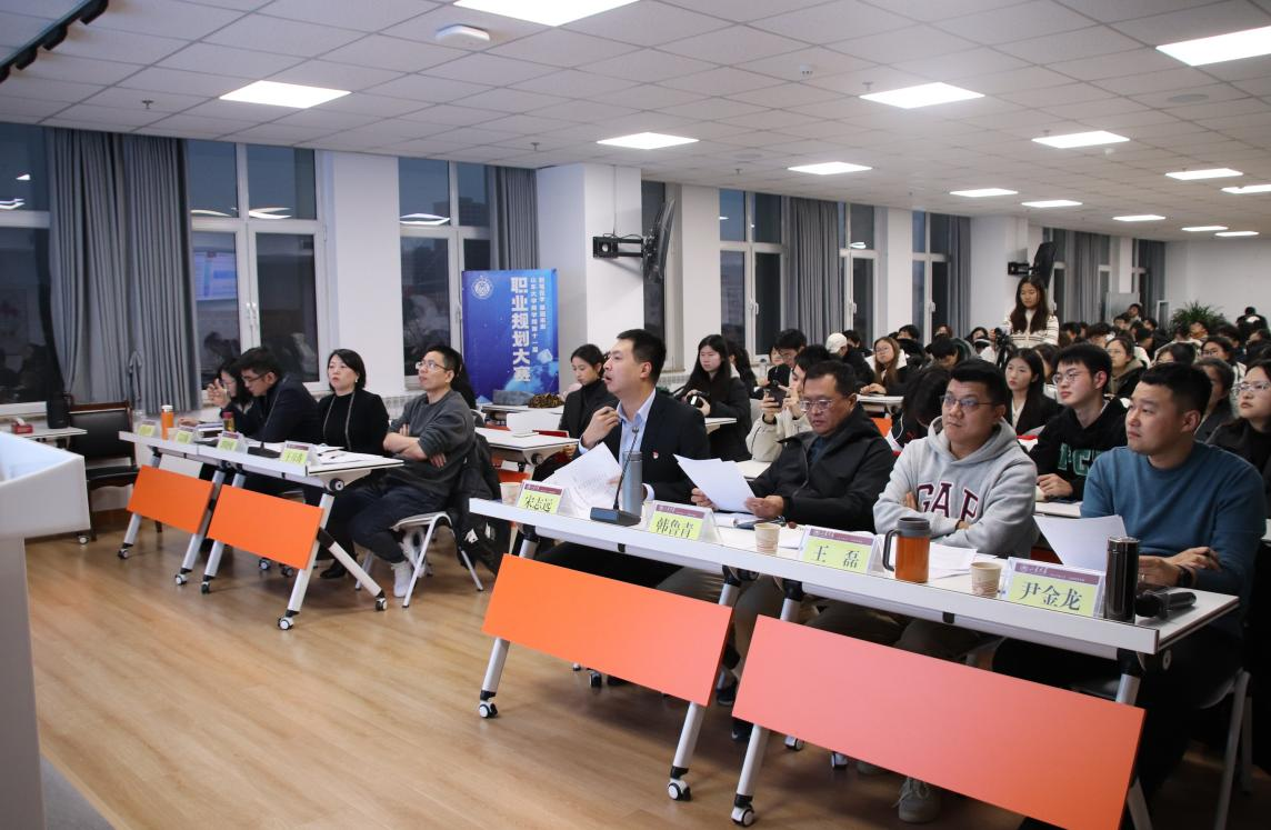 为深入学习贯彻党的二十届三中全会精神,持续推动学院生涯教育和就业指导,加强学生生涯规划意识,提升学生职业规划能力,yl12311线路检测按照学校部署要求于11月26日在北衡楼426成功举办“职笔在手 摹画未来”yl12311线路检测第十一届大学生职业规划大赛暨yl12311线路检测第十一届大学生职业规划大赛选拔赛。威海校区大学生就业创业指导中心副主任王彦涛和中信证券(山东)威海营业部运营总监宋志远作为嘉宾评委出席决赛,yl12311线路检测党委副书记郭晓妮、韩鲁青及6位辅导员担任评委,yl12311线路检测各年级200余名同学分赛道参加观摩学习。