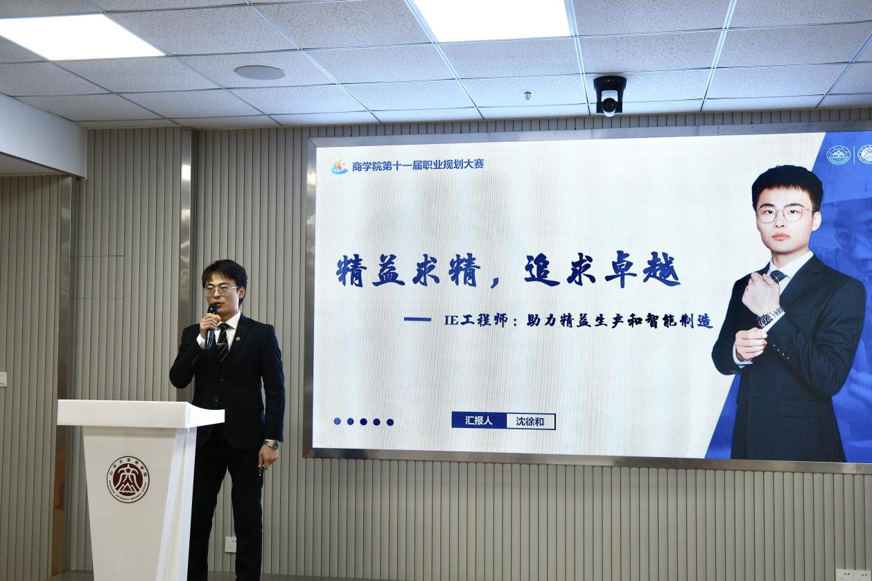 大赛自11月初启动以来,共吸引全院近600名同学报名参赛,经层层选拔,最终筛选出20名选手参加院级决赛。大赛分为就业赛道和成长赛道,两赛道各有10名选手进入决赛。参赛选手们结合自身专业背景和个人成长经历,将个人职业追求、兴趣特长与国家社会需求紧密结合,明确职业目标,充分展现出自己的职业规划方案和行动实践成果。2024级工业工程与管理专业硕士生沈徐和深入企业一线实习,用专业知识创新专利改善工作,向着IE工程师的职业目标不断努力。2024级会计专业赵小毓将互联网行业财务BP岗位确定为自己的职业目标,深入分析了求职岗位的行业需求与自身专业优势,展现出较强的专业素养和职业契合度。2022级旅游专业本科生冯朝伟选择将目光投向基层,立志回到家乡成为一名基层村官。2022级数字营销专业本科生姚露以传统工艺品品牌经理人为成长目标,发掘非遗文化产品的市场价值、用品牌打造推动文化传承发展。参赛选手们的自我展示既贴合专业培养目标,又对接国家和社会需求,展现了各自职业规划的思路和成果,彰显了大学生的使命担当和职业价值追求。