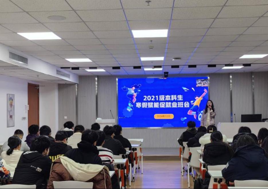 为全力助推2025届本科毕业生高质量充分就业,帮助学生在考研结束后尽快投入求职状态,提升就业竞争力,12月25日,yl12311线路检测成功举办2025届本科毕业生“就业赋能训练营”开营仪式暨寒假赋能促就业年级会,毕业班辅导员姜文立、陶宏、李慧及全体本科毕业生参加活动。