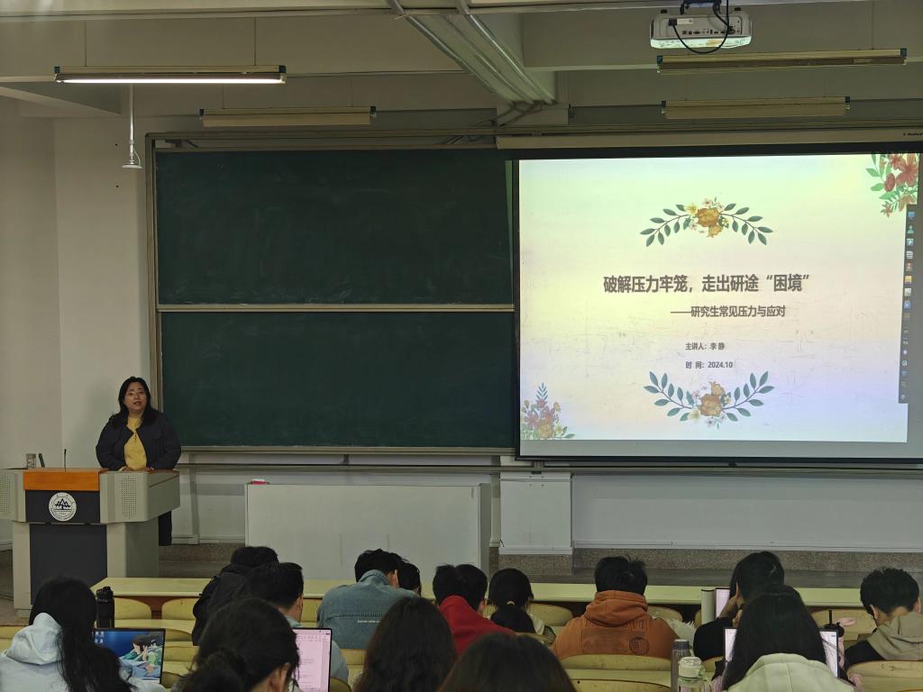为帮助研究生新生快速适应研究生生活、养成积极向上的良好心态,10月25日上午,yl12311线路检测在学院楼353室举办了“走进心灵之破解压力牢笼,走出‘研途’困境”讲座。本次讲座由yl12311线路检测研究生辅导员李静老师担任主讲嘉宾,2024级新生研究生参加。