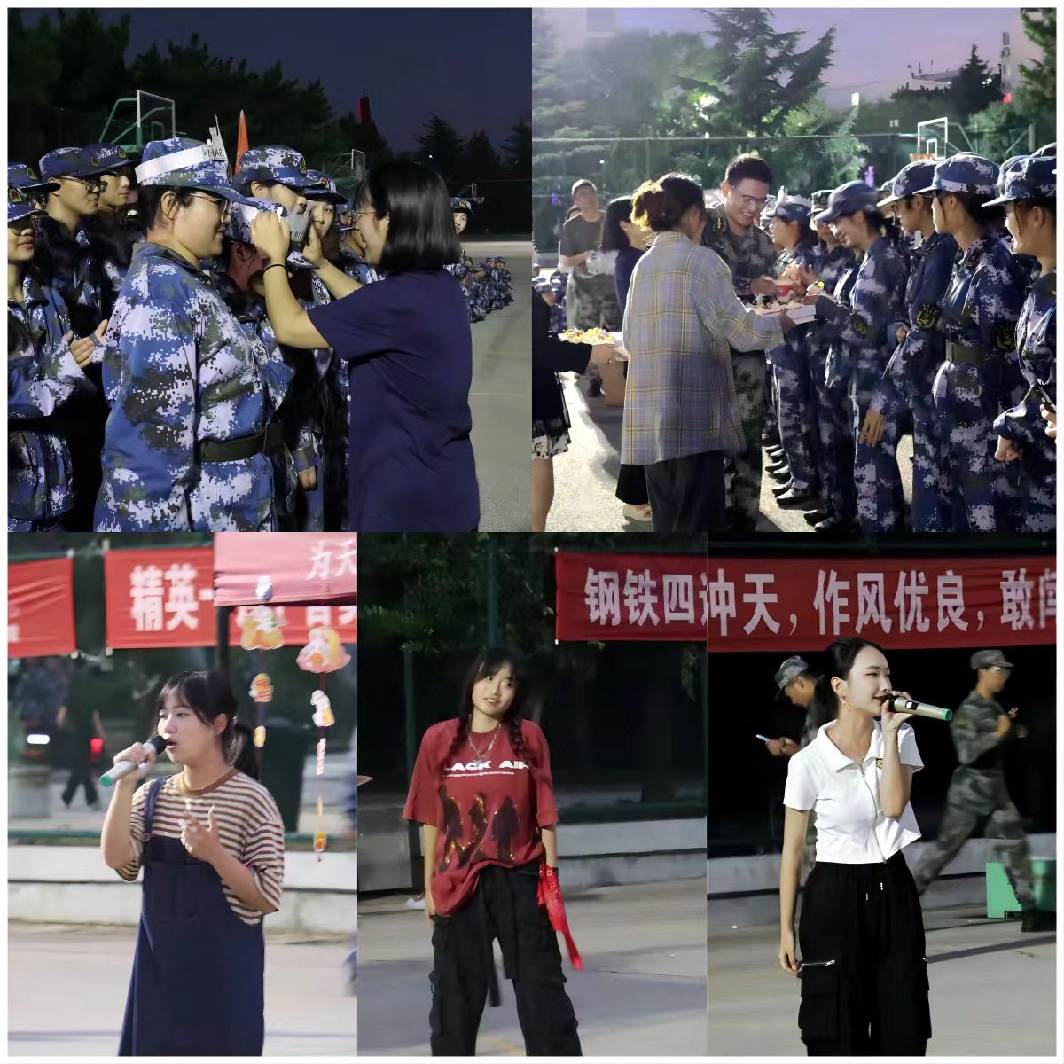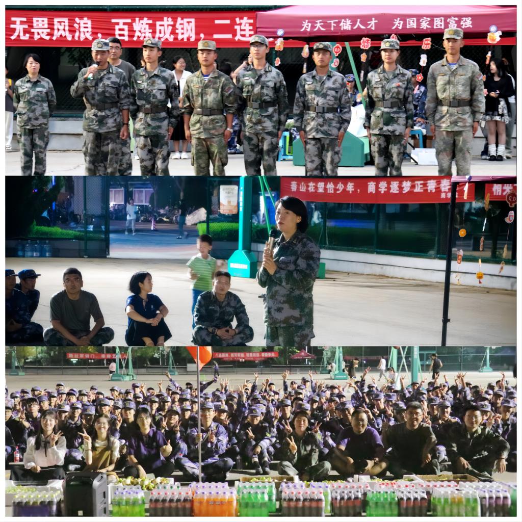 教官们英姿飒爽,率先登场,二连长李泓广代表全体教官向在场师生送上祝福,感谢2024级本科生在军训期间的配合与支持,肺腑之言,显赤子之心。在文艺表演中,2024级杨欣媛、黄颖琪、张鑫同学为大家表演了歌舞与说唱,在场师生热情高涨,大声合唱,享受欢乐。惊喜环节将活动推向高潮,学院邀请29位九月生日的同学集体上台,带上生日帽,送上生日蛋糕,共唱生日歌,祝福他们生日快乐,共度人生重要时刻。郭晓妮代表学院向全体新生送上水果和饮料,向全体新生送上节日的祝福,对新生在军训中的努力和成绩提出表扬,希望新生继续保持当前的良好状态,在今后的军训和学习活动中继续追求卓越,不断进步。