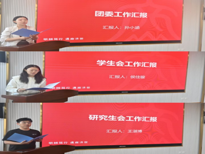 会议伊始,团委代表孙小涵、学生会代表侯佳璇以及研究生会代表王湛博分别对团学组织工作进行全面总结,着重汇报了新学期迎新纳新工作情况,客观分析了工作开展过程中存在的问题,针对性提出改进措施并对未来的工作方向进行展望。