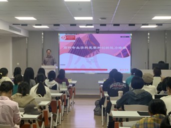 陶宏以《商科专业学科竞赛和创新能力培养》为题,从介绍学校本科生学科双创竞赛分级分类名单切入,就全国大学生电子商务“创新、创意及创业”挑战赛、全国大学生能源经济学术创意大赛、“学创杯”全国大学生创业综合模拟大赛、全国大学生节能减排社会实践与科技竞赛等的参赛要求、备赛要点和时间节点等方面进行了详细的说明。他全面介绍了校区科研立项管理办法,从本科期间在校时间线为线索,引导新生以参与科研立项和社会实践活动为起点,善于从书本中、生活中和工作实践中发现新问题。他引入优秀学生成长案例,引导学生保持科创热情,在低年级主动进行基础科创能力的培养,将科创热情转化为科创实践,争取在高年级能够产出科研成果。