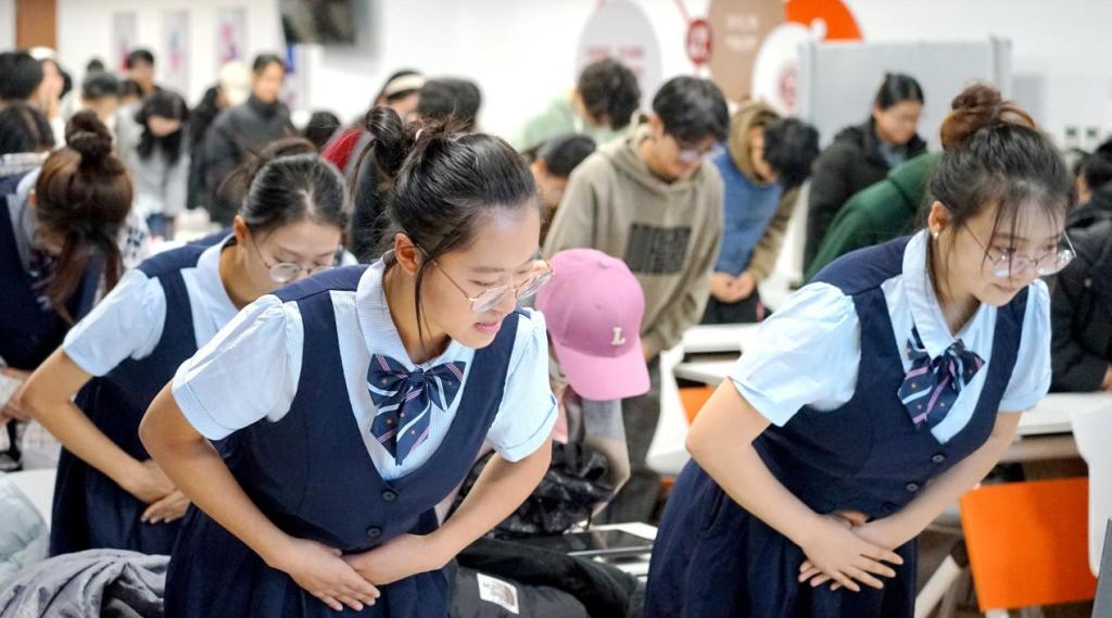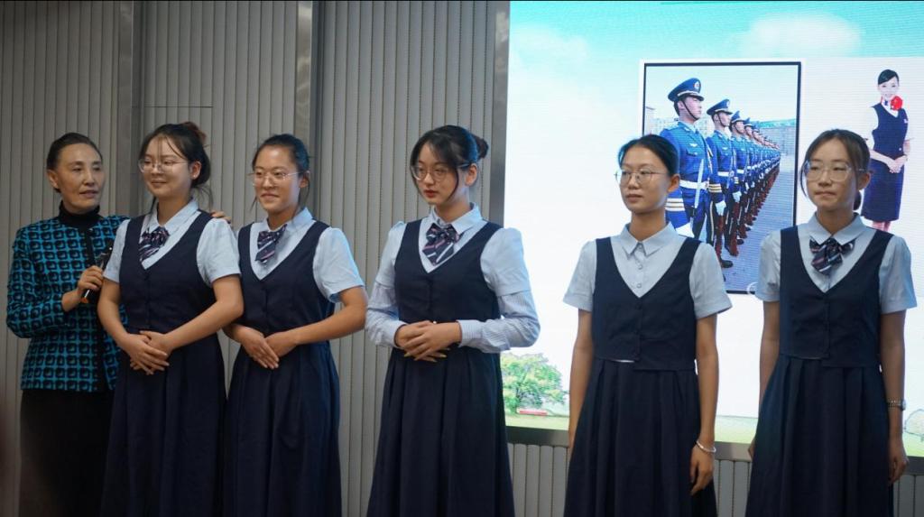 王祖舫与在场同学现场互动交流,亲自示范如何塑造良好形象,为同学们进行礼仪规范指导。