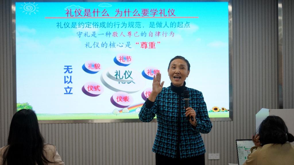 王祖舫以“知书达礼,砺行致远”为主题,由浅入深,细致剖析了从古至今礼仪的丰富意蕴,阐述了礼仪和尊重之间相辅相成、相互联系的关系,点明了在社会生活中尊重自己与他人的重要性。