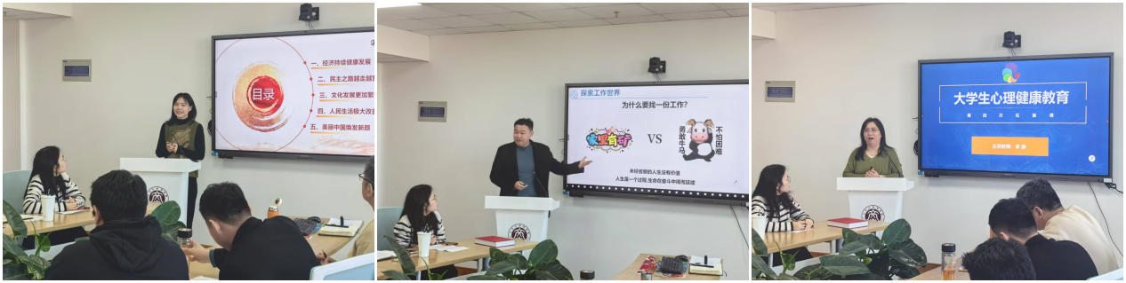 授课展示环节,各位老师紧扣课程核心,结合形势与政策、心理健康教育、职业生涯规划与就业创业指导等紧贴学生工作实际的内容,展开具有理论深度、政治高度、感染力度、现实效度的教学展示。授课过程中,老师们语言表达流畅、案例素材丰富,展现了学院学生工作队伍的教学水平、理论功底和育人风采。