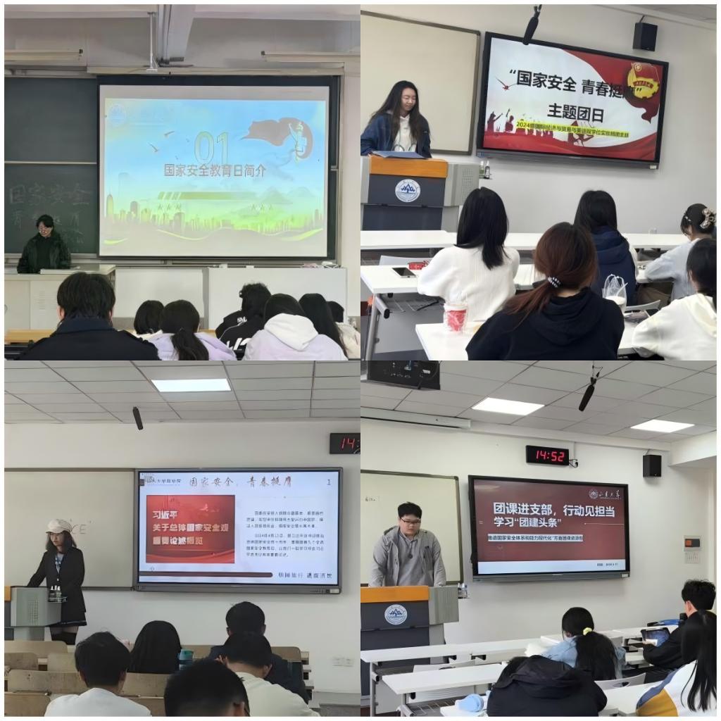 2025年4月15日是第十个全民国家安全日,各团支部成员集体学习了习近平总书记有关总体国家安全观的重要论述。各团支部以“团建头条”公众号学习包为关键资源,组织支部成员学习观看有关国家安全的重要理论文章和系列团课、公开课,通过丰富的警示案例提升青年学生的国家安全意识,形成了全员共筑大安全格局的浓厚氛围。以赛促学,各团支部积极组织青年学生参与国家安全知识竞赛,通过答题检验国家安全相关知识学习成果,引导青年将总体国家安全观内化于心、外化于行,充分汇聚起维护国家安全的青春力量。