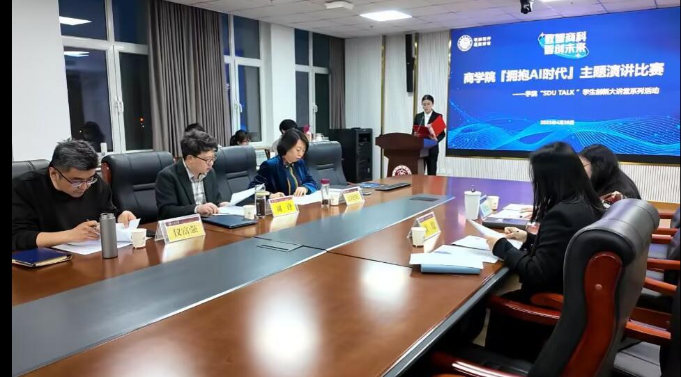 为进一步深化教育、科技、人才“三位一体”协同发展,深入构建“学在山大,快乐成长”特色育人体系,推动商科教育与AI技术深度融合,我院积极响应学校的号召,于4月28日晚举办“拥抱AI时代”主题演讲比赛院级选拔赛,学院党委副书记郭晓妮、星耀科研小组负责教师刘锋、学院团委书记仪富强、学生科创工作分管老师谈殷、学生会工作分管老师姜文立担任评委,各团队成员和各年级学生代表参加此次活动。