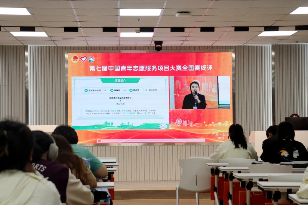 论坛分为视频学习与思考总结两个部分。第一环节,主持人播放第七届中国青年志愿服务项目大赛全国赛终评中“血脉永相连”、“守护大江豚影”、“我为汽车栽棵树”等多个优秀项目的答辩总结视频。从医疗救助、生态保护等多元领域,生动诠释志愿服务精神内涵,不断创新志愿服务思想,让参与的同学深刻认识到志愿服务在社会各方面的重要价值,拓展志愿服务活动开展思路。