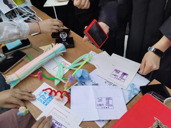 本次活动共设置了三个趣味项目,分别为:“再逢山海·留影山大”毕业打卡计划、“青春序章・共书未来” 毕业寄语计划、“手作繁花・情系母校” 毕业献花计划。打卡活动中,毕业生们提交了创意毕业照片,用镜头定格了与母校的专属记忆。寄语活动中,毕业生们将对母校和学院的感恩与祝福、对未来的憧憬与期许,化作一张张图文,有的同学记录了难忘的师生情谊,有的同学用简笔画表达了对开启人生新旅程的期待,贴满毕业寄语的毕业墙承载着2025届毕业生们最美好的心意。毕业献花计划的活动现场进行了扭扭棒折花教学,毕业生们全神贯注地投入创作。参与趣味项目后,现场发放了山大风景明信片进行盖章,毕业生们凭印章抽取了毕业季的限定冰箱贴。